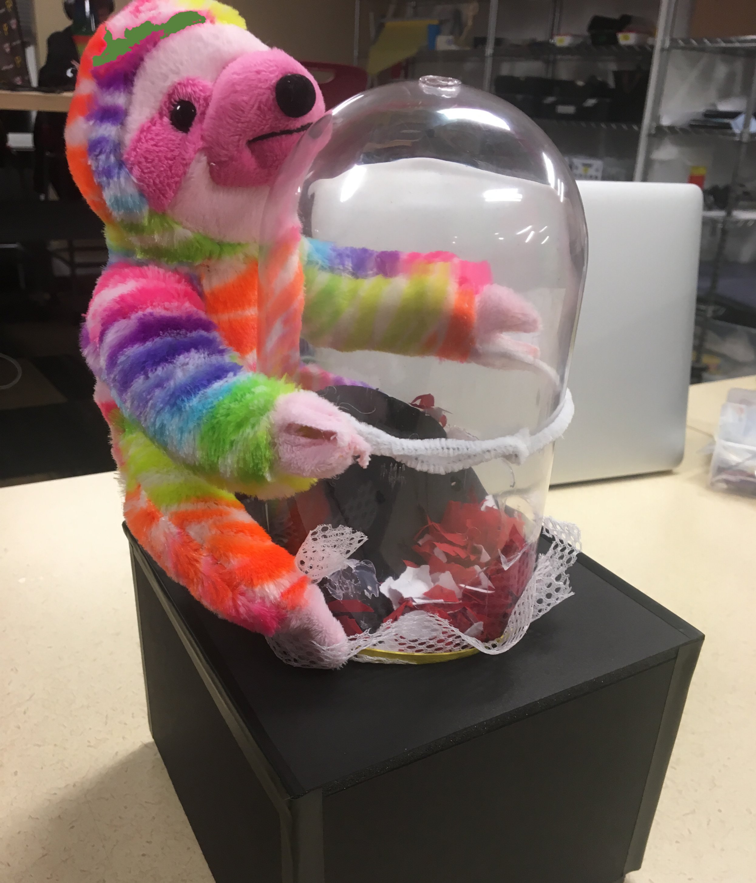 Once we aligned on a scenario, we explored how we could create movement inside the glass dome and how we could incorporate touch as the trigger for our intimacy object. We tested different servos and fans to determine the best option for our object. Once the code, the input (squeeze sensor) and output (blower) were incorporated, we developed the base to host the glass dome.